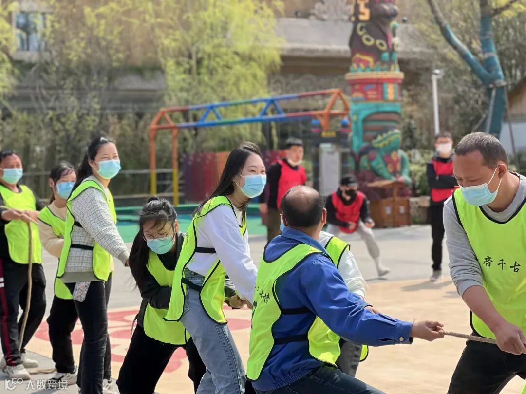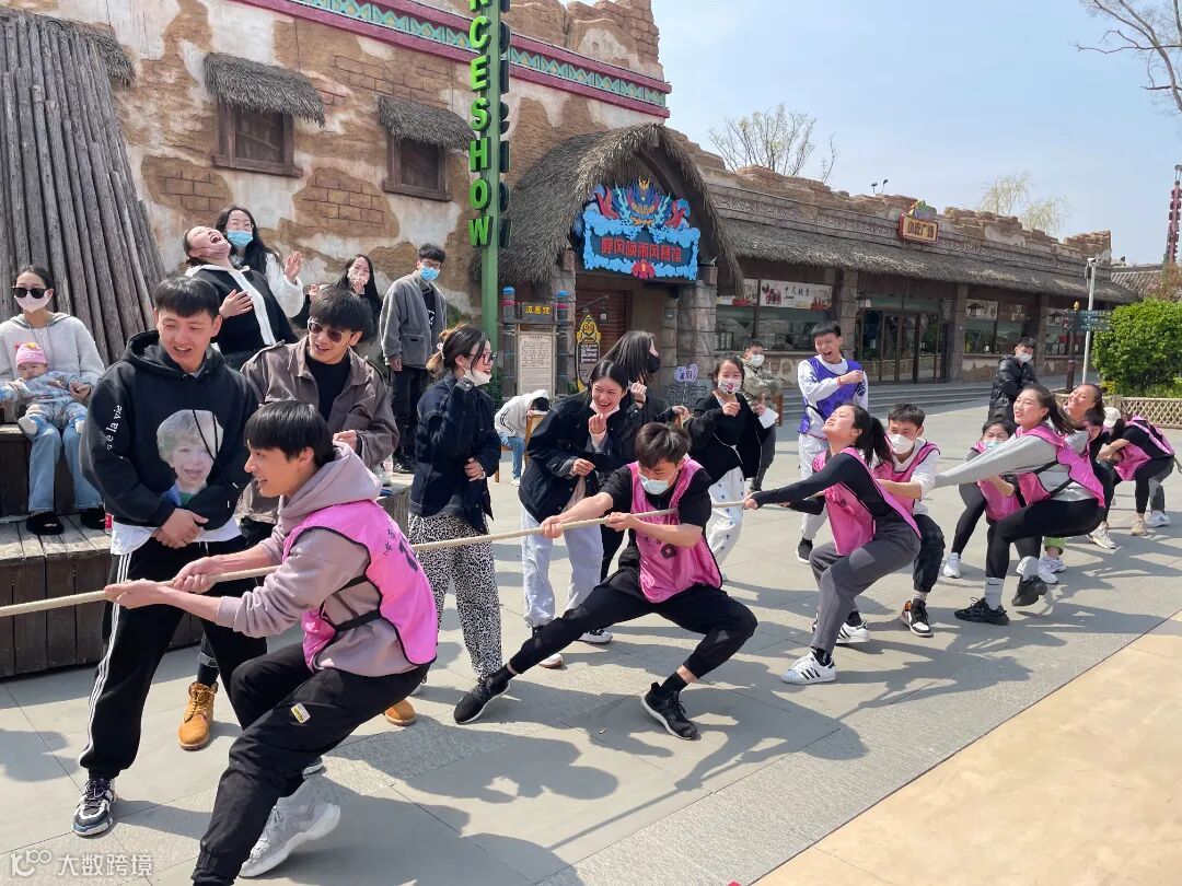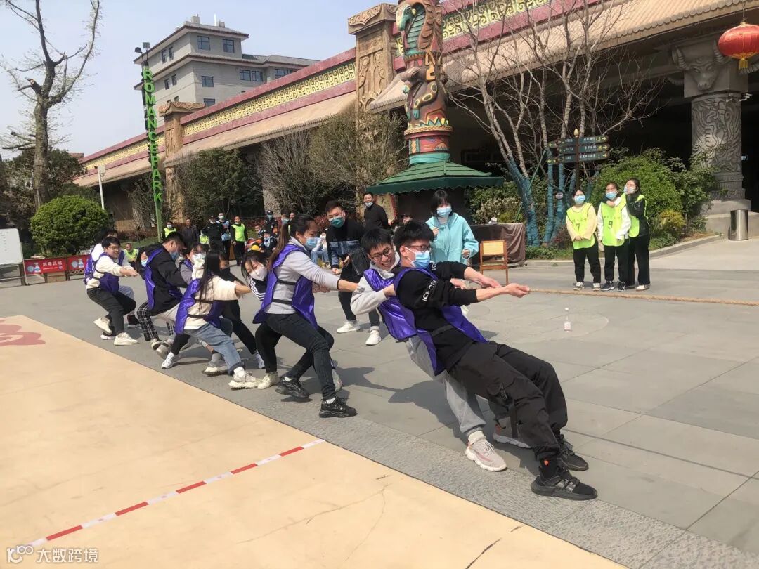 齐心协力把绳拉,力量与耐力的比拼就此展开,啦啦队的激情呐喊,更让人充满力量。