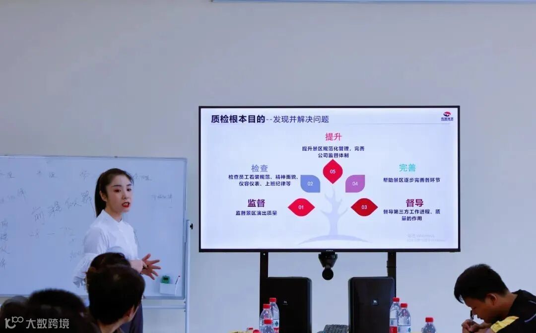 首先由人力资源部负责人杨媛媛针对半年度工作进行回顾分析:一是质检发现整改问题的数据、存在的不足及待改善方面,提出质检的根本目的是发现并解决问题;二是服务经理的接听数据及特殊事项分享。提出服务经理应想游客之所想,解游客之所需,不断提升服务满意度。