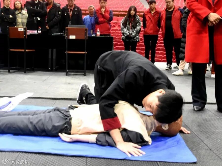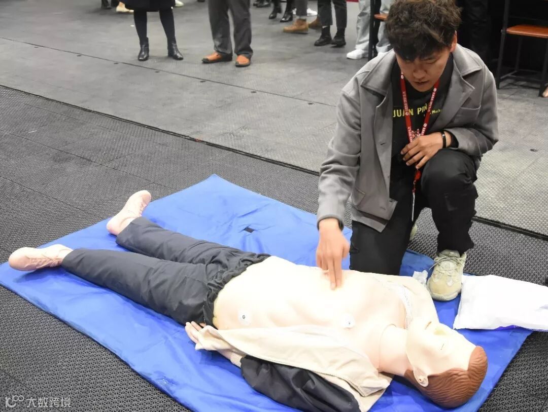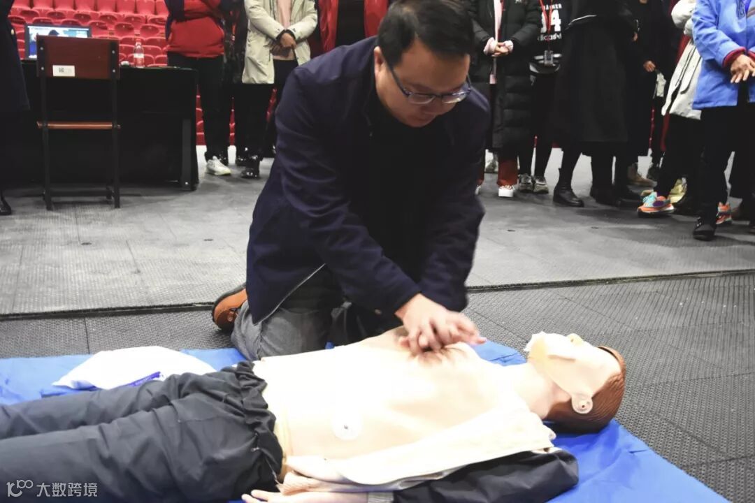 现场实操演练,让在场每一位员工都熟悉掌握心肺复苏的操作。