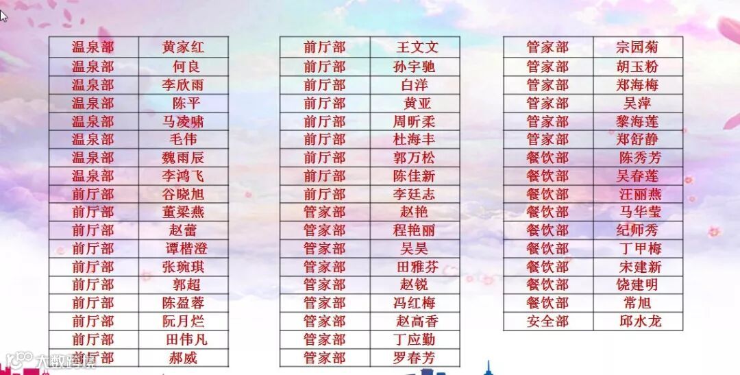 服务标兵名单