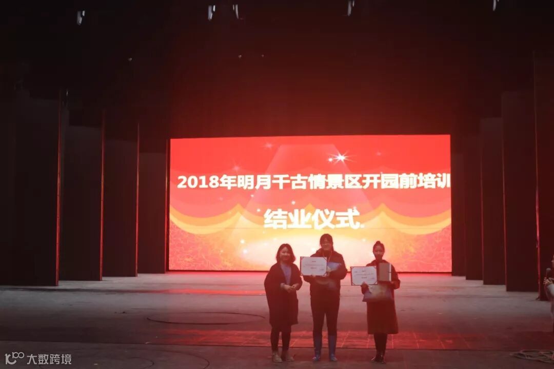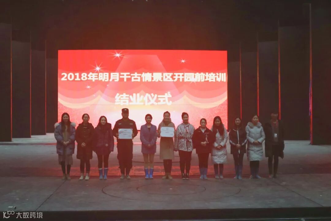 12月21日上午,明月千古情景区在剧院举办培训结业仪式,就此为期11天的开园前培训圆满结束,行政人事部、财务部、接待部、游乐部等各部门管理人员和员工80余人参与了本次仪式。