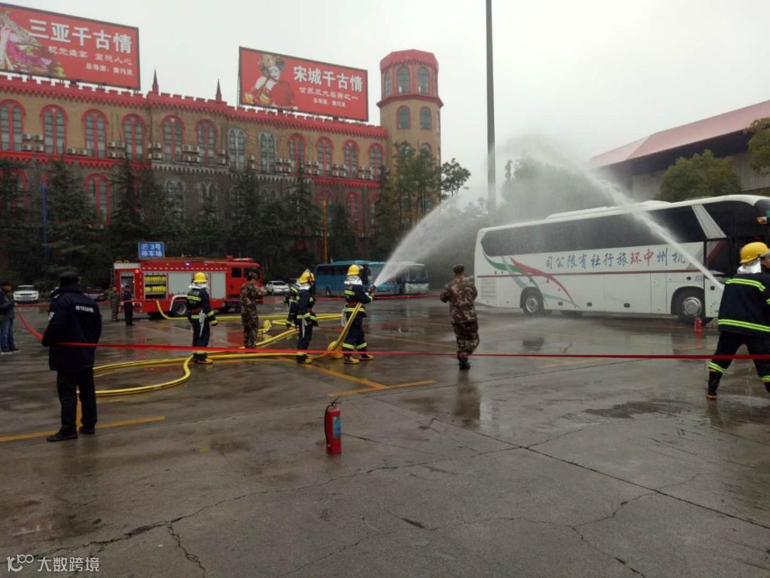 杭州宋城旅游区(西湖片区)在千古情2号剧院、千古情主题酒店组织消防演练,并联合之江消防中队针对旅游大巴车遇火情开展专项消防演练,此外还开展了夜间反恐防爆和童心乐园遇停电、突发情况救护演练。