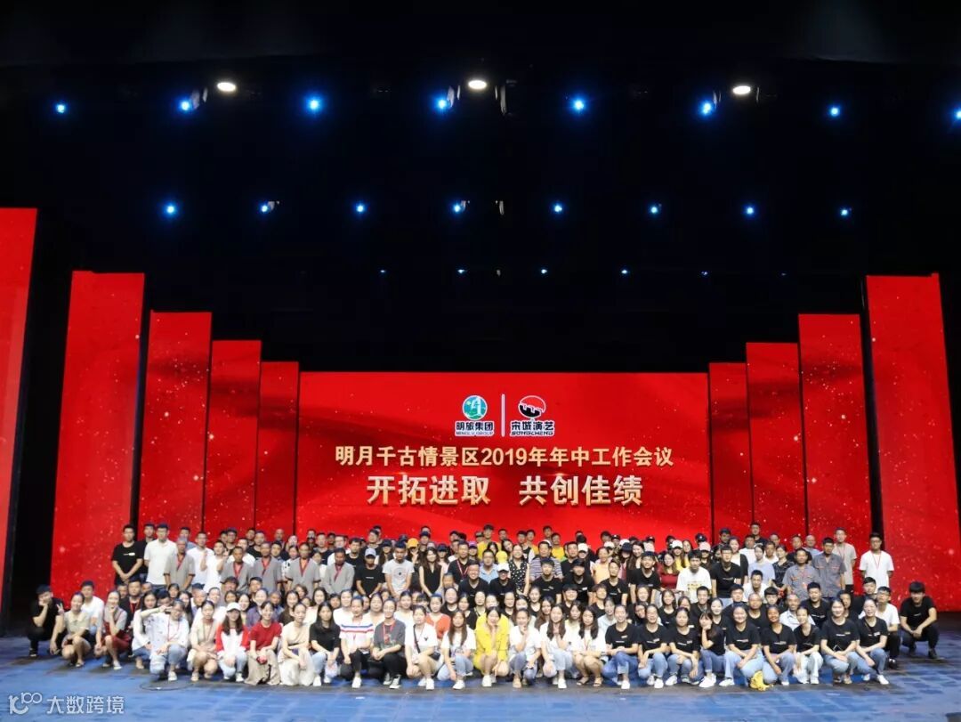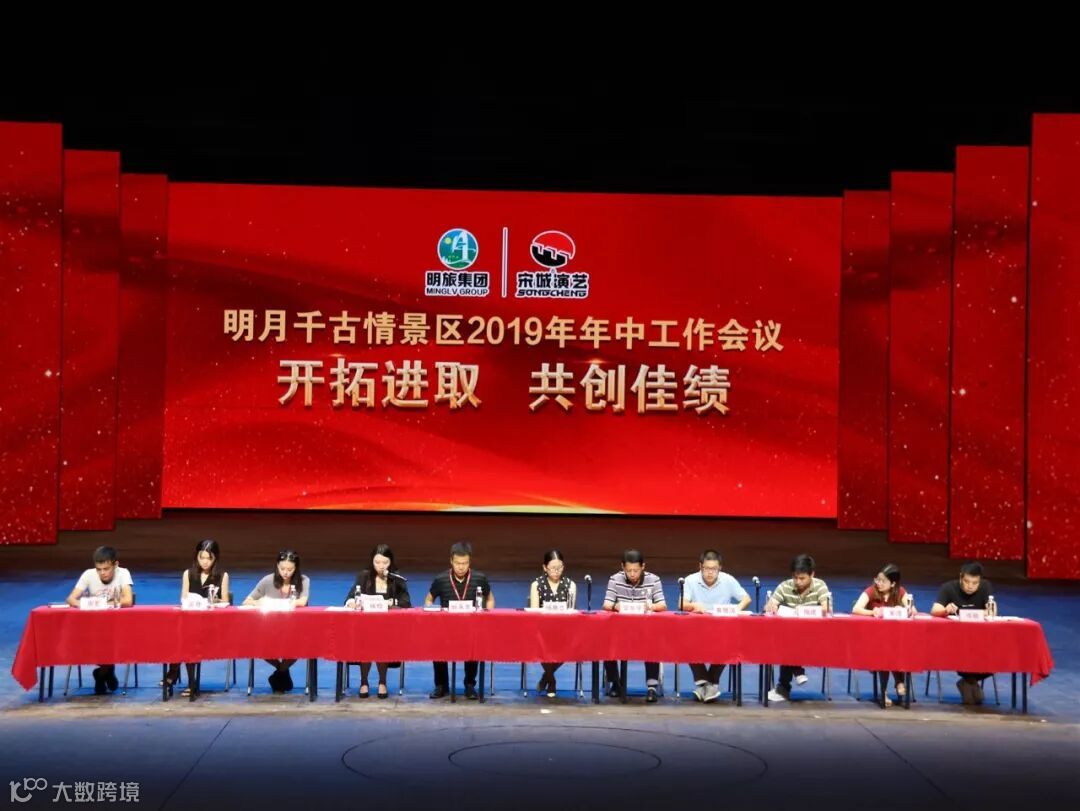 7月25日,明月千古情景区在千古情大剧院召开2019年年中工作会议,景区负责人杨艳兰、总经理助理常东宇等14位管理人员及景区各部门全体员工200余人参与了本次会议。