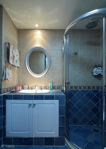 卫生间用了蓝色调,让人放松,卸下一日的疲惫!