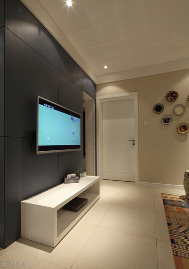 简约的电视墙跟多元素的墙壁装饰起了强烈的对比。。。