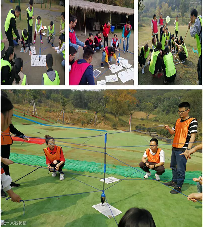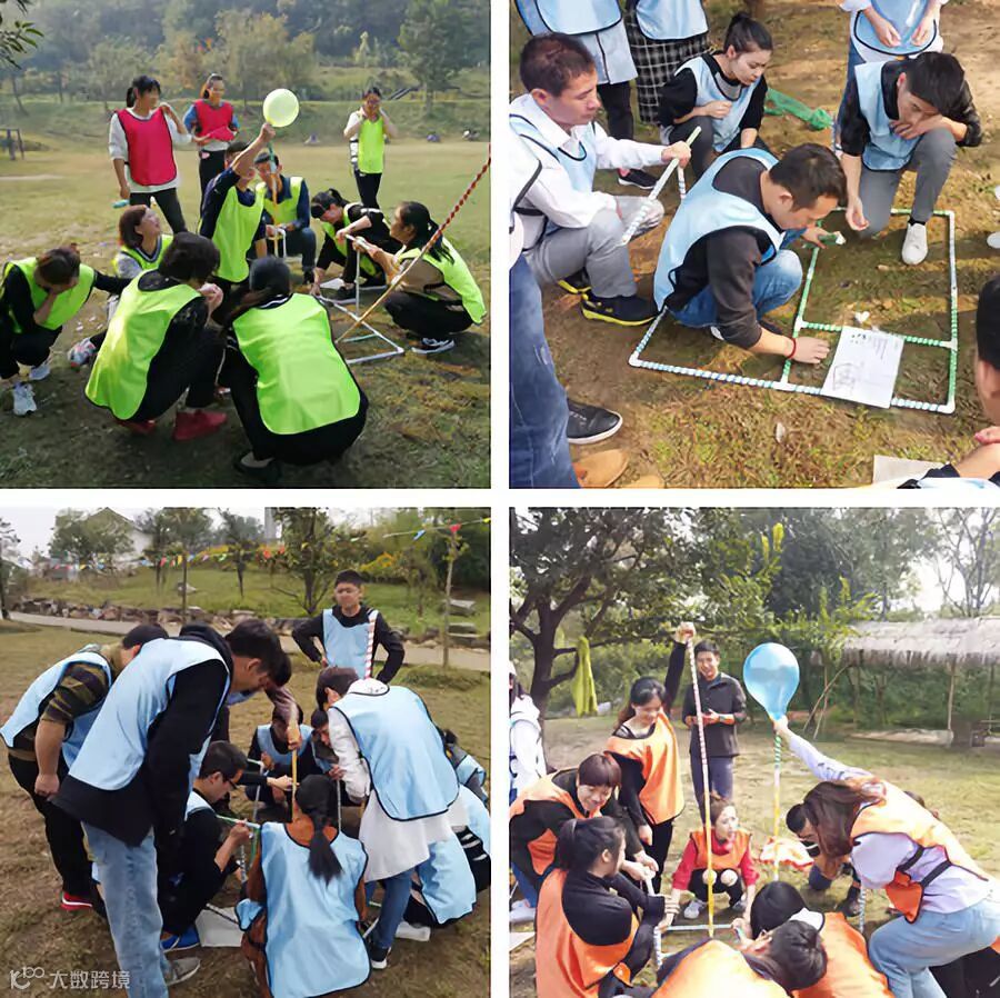 由教练提供道具(水管和接头),按照图纸规定的图形拼接,并最后留出口子吹爆气球,速度快的一方则获胜。此项目大大培养了团队高度契合执行力,并建立良好的工作习惯流程。
