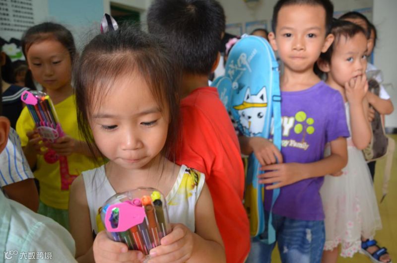 孩子们看到这些崭新的学习用品,露出了最纯真的笑脸。