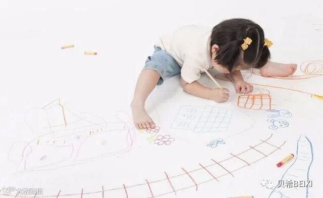 此时并不要宝宝会画什么,而是为了培养他运用笔的能力以及“创作欲望”。大家可以先教会宝宝如何拿笔,再鼓励他主动地画画。宝宝随意画别急着阻止,可以鼓励他模仿着画出一些笔划,并告诉宝宝像什么。