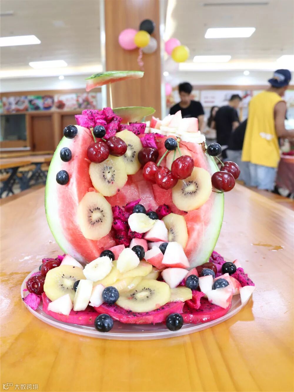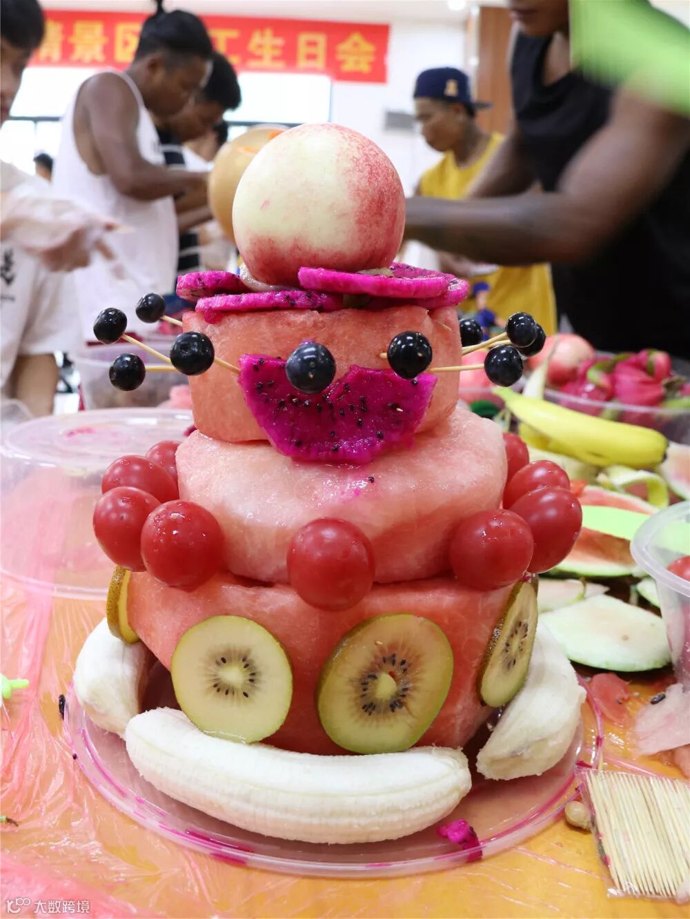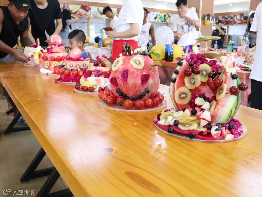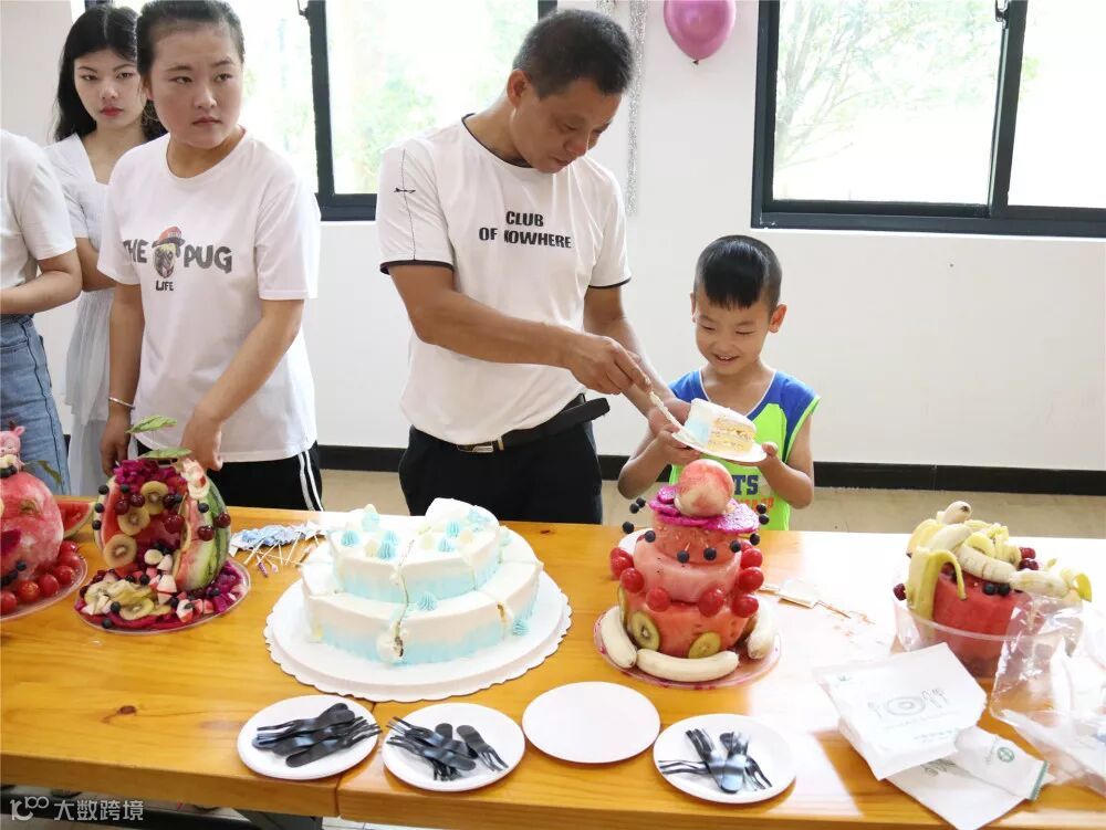 随后,参加生日会的寿星每3人分为一组,以小组为单位合作DIY水果蛋糕。