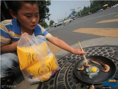 虾和鸡蛋都晒熟了