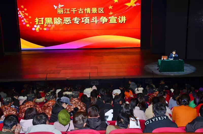 同时,玉龙县黄山镇派出所李元警官也来到景区,普及扫黑除恶知识,讲解了扫黑除恶专项斗争工作的意义,重点打击的十类涉黑涉恶违法犯罪,涉黑涉恶线索的摸排上报机制,如何界定黑社会、恶势力,黑社会性质组织的四个特征,恶势力的表现形式等等知识点。