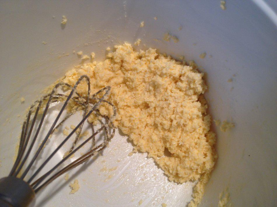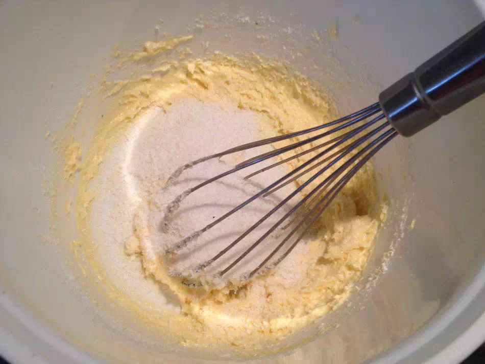 黄油室温放至半软化状态,加细砂糖用打蛋器打至颜色变浅(这里一定要用绵白糖或糖粉),分次加入鸡蛋液,每加一次都要搅拌,防止水油分离。最后加入椰蓉备用。
