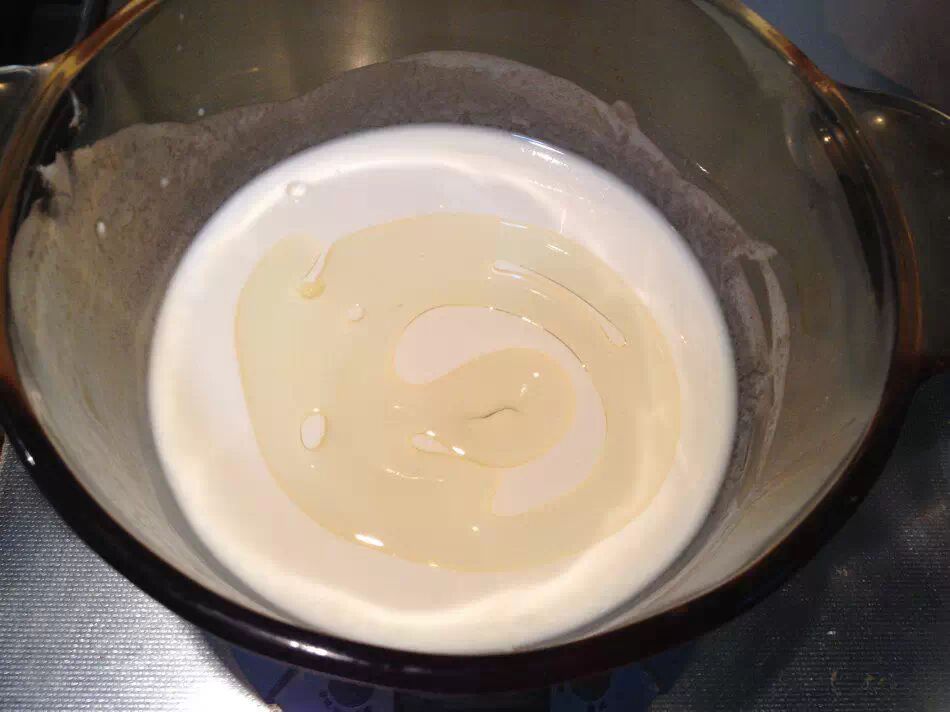 网上常规的方子都是油和水煮沸后倒入面粉,但我以前做这一步时,即使过了两遍筛的面粉有时还是混合得不够均匀,所以这一步骤我改为将水和面粉先混合搅伴至没有颗粒,再开始煮。