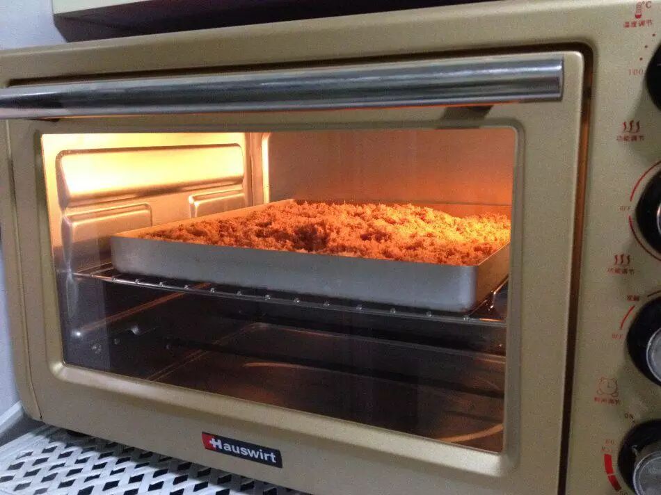 搅得差不多后入平铺在烤盘上,入烤箱,低温100-120度,开启热风(一定要有热风功能的烤箱哦),进行烘干。