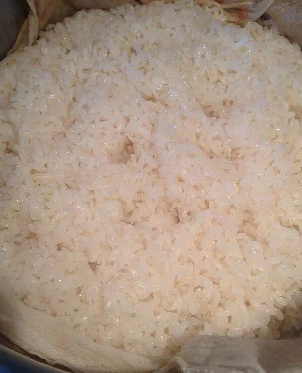 一斤半的糯米,一共蒸了20分钟。蒸十分钟时可以上下翻一翻。中途尝一尝,软糯Q弹就可以了,不能夹生,也不能蒸太过头,过头了米粒就糊在一起了。
