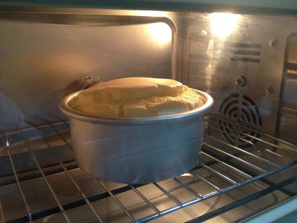 将蛋糕糊放入预热180度的烤箱,关门转至140度,40分钟。