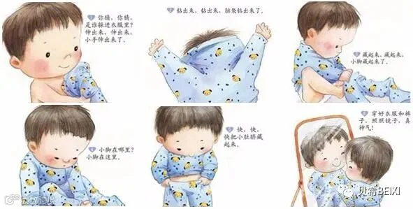 作为家长请保持轻松,像孩子展示你是如何操作的,然后帮助孩子穿好衣服。