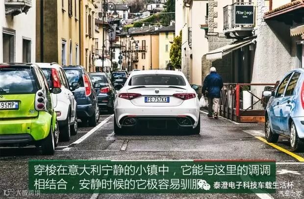 我不想用排气声浪打扰到米兰清晨的这份宁静,驾驶模式调整到A(经济模式),没有引擎的轰鸣和排气的啸叫,此时此刻它十分的安静,和路边的Smart、菲亚特500这些轿车没什么区别。相对迟缓的油门很有亲和力,告诉你此时此刻它很安全,不用为后轮上那600牛·米的扭矩而担心,舒适的悬架不会颠出你刚刚入肚的早餐,对于此时的它没有一点性能车的恐惧感