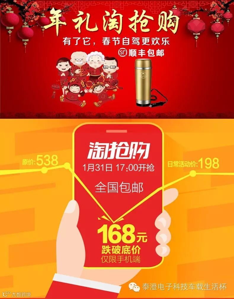 顺风包邮泰澄车载电热杯,年末最后一波淘抢购