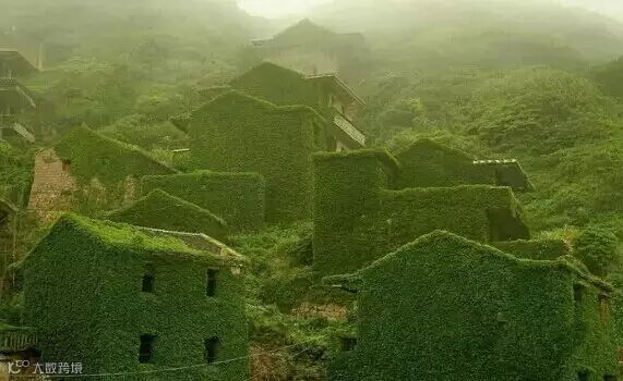 在这个位于浙江舟山嵊泗嵊山岛后陀湾的地方,村落荒芜,岛上的渔民大多已经搬到陆上居住,昔日的房屋废弃,逐渐被大自然侵蚀,布满爬墙虎,成为植物王国,又宛如那绿色的童话世界,仿佛绿野仙踪的梦境。