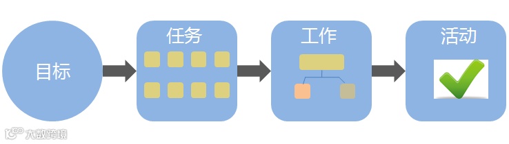 1.将主体目标逐步细化分解,直到最底层的任务活动;