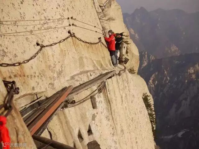 这是中国最危险但也是最热门的登山步道,这个步道从开始到结束都很恐怖。它有近乎垂直的楼梯和狭窄摇晃的人行桥。但还是有很多游客和当地人想要上山来挑战。