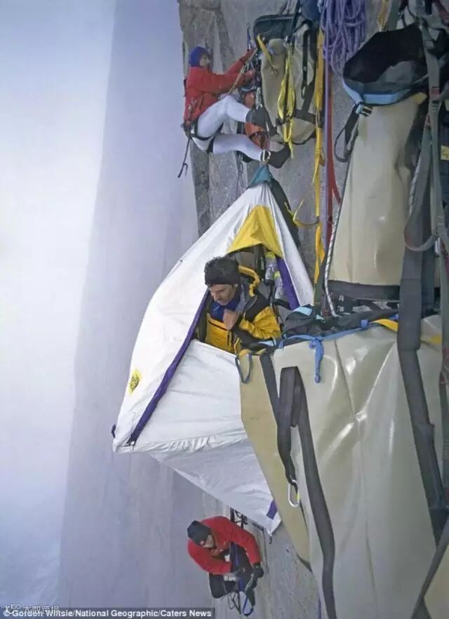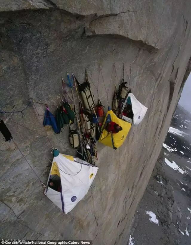 无论在任何崖面,我们都可以发现登山爱好者的踪迹。他们会在数千公尺高的崖壁上搭上portaledges帐棚。对,我们只能期待,这些大胆的人,睡醒的时候,不要忘了自己是在空中睡觉。忽然一个大动作,可能就遗憾了…