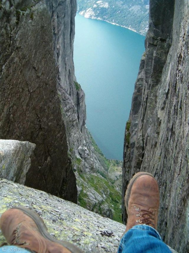 这个在挪威罗加兰郡(Rogaland) 的奇景,重力最后还是让这颗989公尺高的巨石掉下来了。