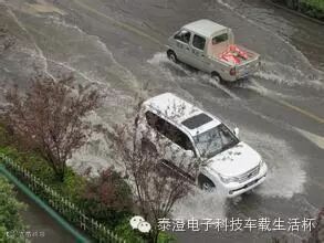 7.暴雨会导致不少路面出现积水。积水超过轮胎的一半时,不能冒险通过,否则很容易导致排气管进水,最终损坏车辆;积水低于轮胎的一半高度时,车辆一般可以通过,但也不能大意,应低挡慢速平稳通过,防止水花溅到发动机上部的电器,造成熄火;离开积水路段后,不要立即快速行驶,因为刹车片溅水后可能导致刹车不灵敏,此时应低速开一段时间,等刹车片上的水分甩掉或蒸发后再正常行驶;如果车辆在水中熄火,千万不要再次启动,应打电话求援。