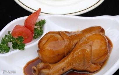 鸡腿6只,黄酒25克,酱油15克,白糖2.5克,茴香4粒,桂皮1小块。