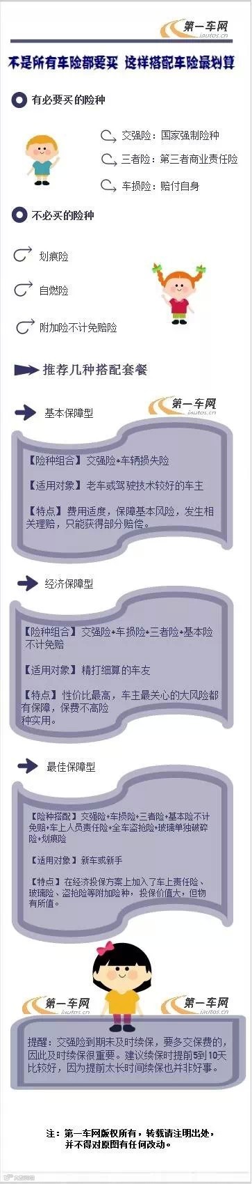 车险复杂,很多刚买车的新手,甚至驾车多年的老手都不敢说完全弄懂了各种车险。下面这张图片,让你更清晰直观地了解各类车险的适用范围和购买建议!