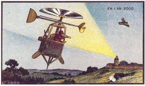 1800年的人们就幻想未来会有一种直升机。现在早就有直升机了,但是长相不是那样的