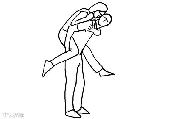 4、女士从后抱着男士的背部与肩膊,留意双手的姿势及摆放要保持自然。