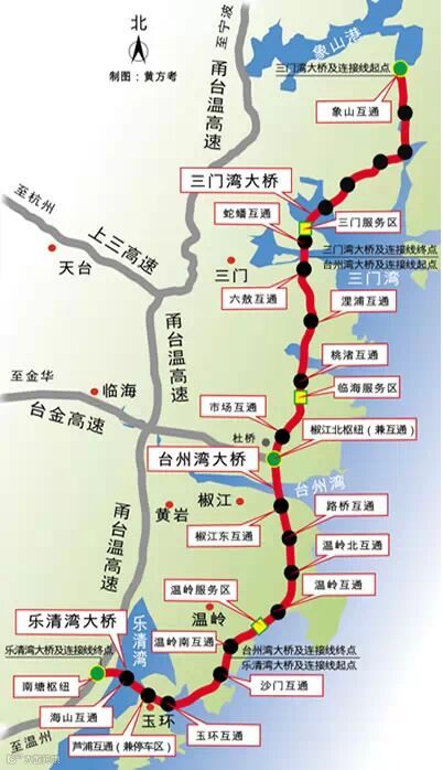 台州沿海高速公路工程的另一个名称是浙江省甬台温高速公路复线台州段,据国家发改委的立项批复,项目由浙江省三门湾大桥及接线工程台州段、浙江省台州湾大桥及接线工程和浙江省乐清湾大桥及接线工程组成,台州境内涉及三门、临海、椒江、路桥、温岭、玉环共6个县(市、区),23个乡(镇、街道),全长147公里,项目总用地1.7万亩,用海2120亩,拆迁40万平方米,总工期4年。沿海高速全线采用六车道高速公路标准,设计时速100公里,这将意味着,至2018年,从三门到玉环,车程可缩短至1个多小时。