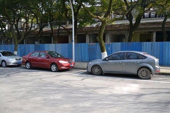 但是,经常碰到的情况是,不但车位紧,侧向空间也不足,车头左前方停有车辆或直接是路肩(辅道停车最常见)。这时就不能按常规方法倒车了,这种横向不足的车位,应该就将车往前开至快与车位前车齐平时,把车辆尽量往左“摆斜”。其目的是为了让车最大限度的利用有限的空间。倒车时右后车轮尽量贴紧前车(跟正常位侧方位停车有很大不同)。
