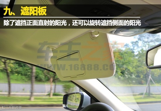 但很多人只知道它们能用来遮挡正面直射的阳光。其实,遮阳板的一个角是可以脱出来向侧面转动的,当阳光从侧面车窗晒进来的时候,可以把遮阳板旋转至侧面,挡住阳光。