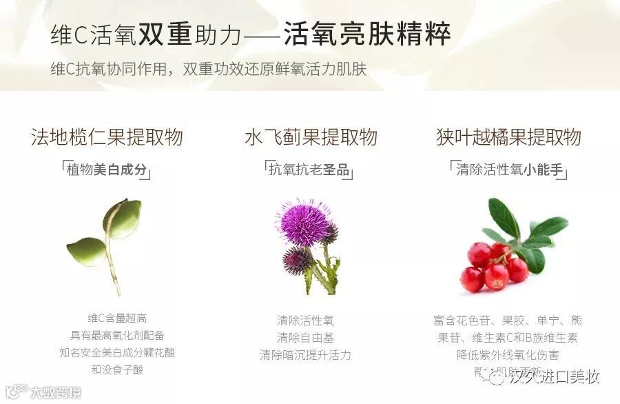 之所以能有如此功效,那是因为核心成分—西西里橙花,它具有很高的精油价值,100公斤才可生产80公克,加上诗丽缤纷特有的鲜萃技术,保留了其活性,极大的发挥了西西里橙花的功效,它能增强细胞活动力,提升了肌肤的弹性,达到了提亮、保湿、减少黑色素沉淀的作用。