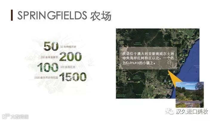 诗丽缤纷的产品的成分都是从植物提取的,所以为了保证植物原料的供应和安全性,诗丽缤纷在澳洲拥有占地近2000亩的农场,选取全球各地优质品种进行培植。