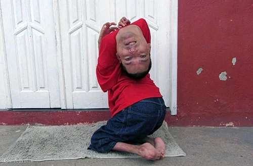 巴西男子Claudio Vieira de Oliveira现年37岁。从出生开始,他就是个极其罕见的残疾人:正常人头顶朝上,下巴冲下,但他却是完全相反的状况。与此同时,他的关节严重畸形,在移动肢体时异常痛苦。