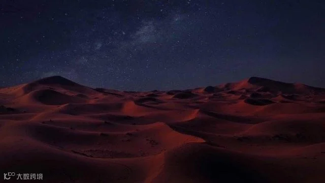 坐在高高的沙丘上,向前,向后,向四面八方望去,到处都是闪烁的星星,眼前就像是铺开了一大片洒满了碎钻的黑色绒布。