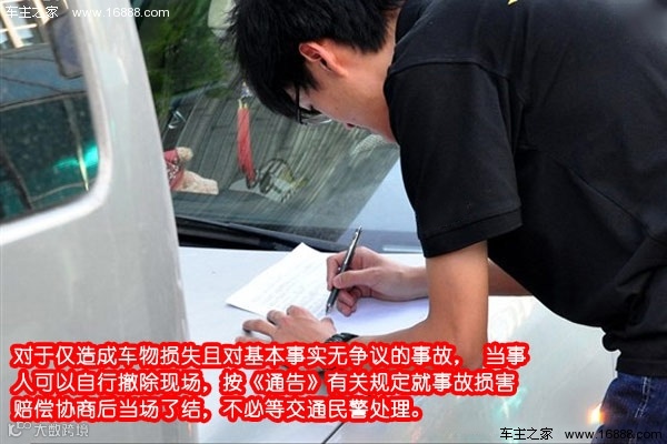 4、对于仅造成车物损失且对基本事实无争议的事故, 当事人可以自行撤除现场,按《通告》有关规定就事故损害赔偿协商后当场了结,不必等交通民警处理。这样不但方便了当事人,有效防止了交通堵塞,也给他人的出行带来便利。