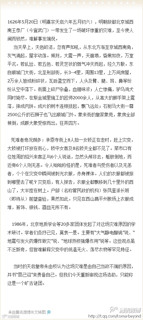 9. 999个震惊世界之谜: 1626年,今北京宣武门一带发生惨重灾变。5.20日早上忽震一声