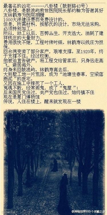 6:到过厦门的朋友一定会去鼓浪屿玩,然后鼓浪屿上八卦楼的灵异传闻,