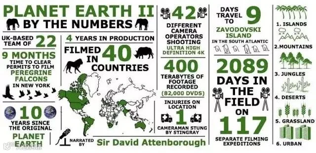 为了在各个层面尽善尽美,BBC斥巨资采用UHD4K超高清技术,在全球四十多个国家取景,摄制团队前后出行117次,拍摄总耗时2089天,并大手笔请来了凭借《狮子王》获得奥斯卡最佳配乐奖的汉斯·季默(Hanz Zimmer)给本片制作配乐主题曲。