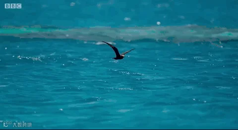 塞舌尔的平静海面,海水下的一条珍鲹突然跃出水面,吃掉了飞在海面上的乌燕鸥,接着更多的乌燕鸥也被珍鲹吃掉,而一只小燕鸥在父母的催促下,顺利逃开珍鲹的大嘴,虎口脱险。