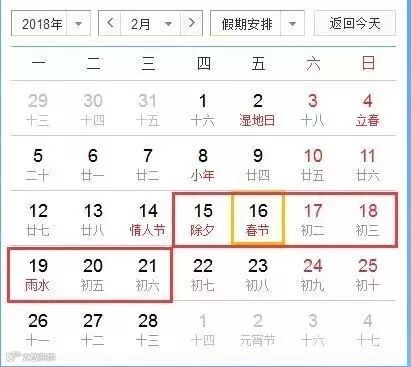 2018年春节是2月16日星期五。