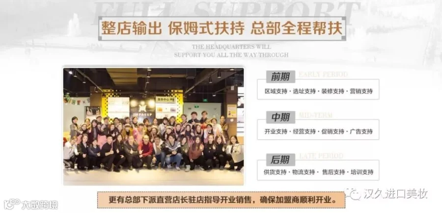 创业前期要考虑的东西很多,这让创业小白无瑕顾及,而汉久进口美妆采用整店输出的加盟模式,就能让创业者不慌有序的开店,因为从开店投资、店面选址、装修设计、店内产品、人员培训、产品陈列、运营管理、收银系统、产库物流、活动促销等涉及到连锁店经营、管理、人员等各个方面的项目总部均有专业人员帮助扶持。