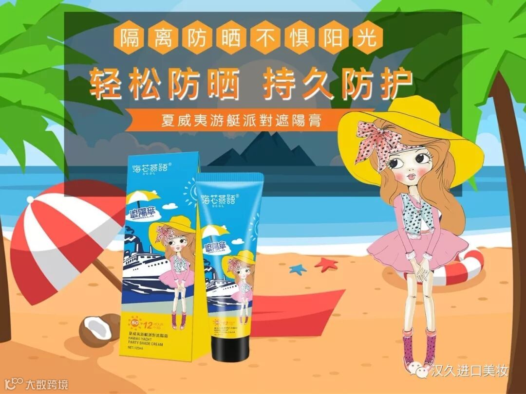 夏威夷游艇派对遮阳伞”为夏季防晒霜,防晒指数达50倍,产品清爽质地、无粘腻感、易于涂抹、提亮肤色、补水滋养,有效抵御紫外线对肌肤的伤害,温和、隔离、修复,使肌肤形成防护屏障,水润通透。