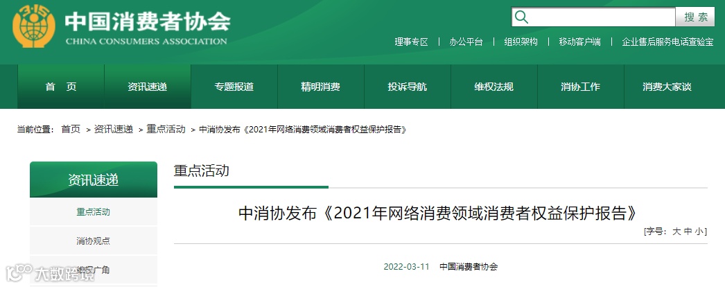 近期,中国消费者协会发布报告指出了2021年网络消费领域八种侵害消费者合法权益情形。