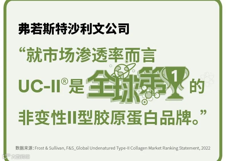 弗若斯特沙利文认证:UC-II 是全球市场渗透率第一的非变性 II 型胶原蛋白品牌; -